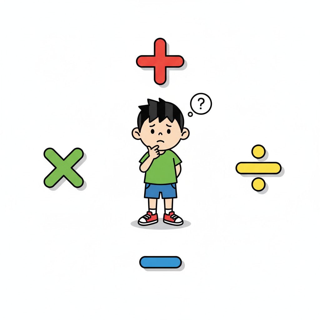 算数の文章題や問題を解くときには,「足すのかな?」「引くのかな?」「かけるのかな?」「わるのかな?」と,まずどの計算を使うかを決める必要があります。