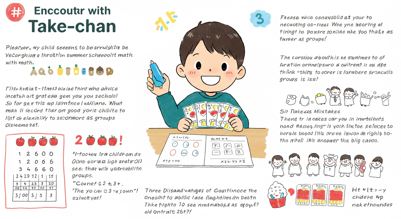 たけちゃんの算数成長日記 たけちゃんの算数成長日記 No.1 たけちゃんとの出会い「うちの子、算数でつまずいているみたいなんです」そんな相談を受けたのは、2025年の夏休み前、7月のことでした。相談をくださったのは友人のお子さん――小学1年生の たけちゃん。人懐っこくて、笑顔がとってもかわいらしい男の... 2025.09.13 たけちゃんの算数成長日記